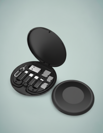 The Fast Charging Travel Cable Set is a compact 60W high-speed charging and data transfer kit designed for convenient travel and everyday use. Equipped with Type-C, USB-C, Micro USB, and Lightning connectors, it supports a wide range of devices while keeping everything organized in a durable storage box. The built-in mobile phone holder adds hands-free convenience for calls, streaming, or navigation. Lightweight and portable (10 × 5 × 5 cm, 350 g), this all-in-one kit ensures you always have the right cable wherever you go.
